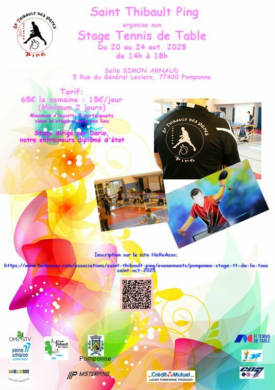 Stage de Tnnis de table organiser par le club de St Thibault Ping