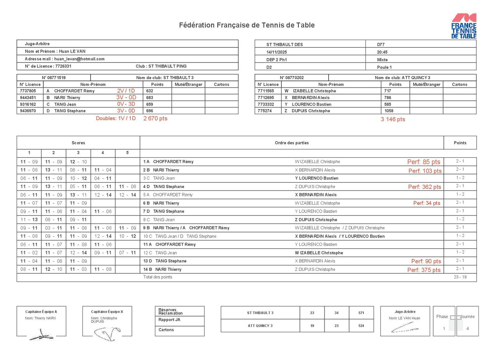 - Thierry NARII : 3V/0D (Perf: 375, 103 & 34 pts) 🌟🌟