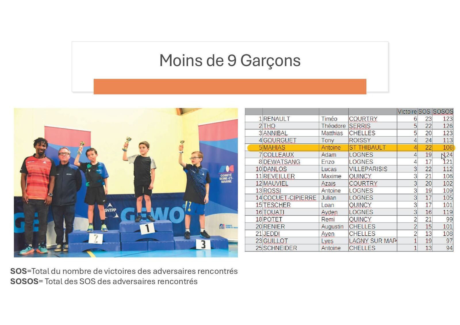 Antoine MAHIAS, en Moins de 9 Garçons, décroche une belle 5ème place qui témoigne de son potentiel.