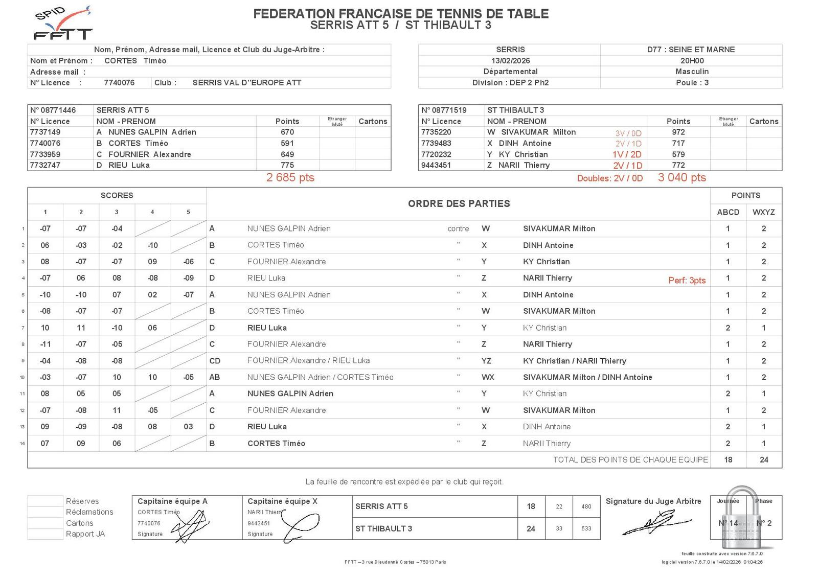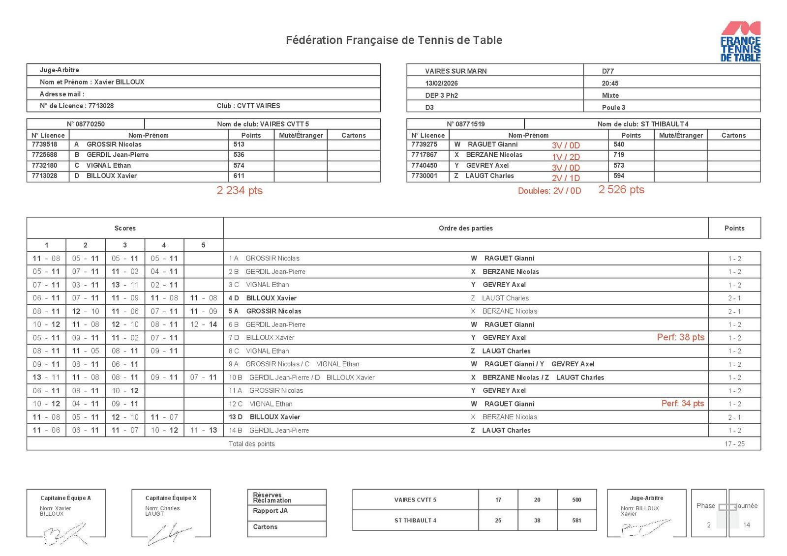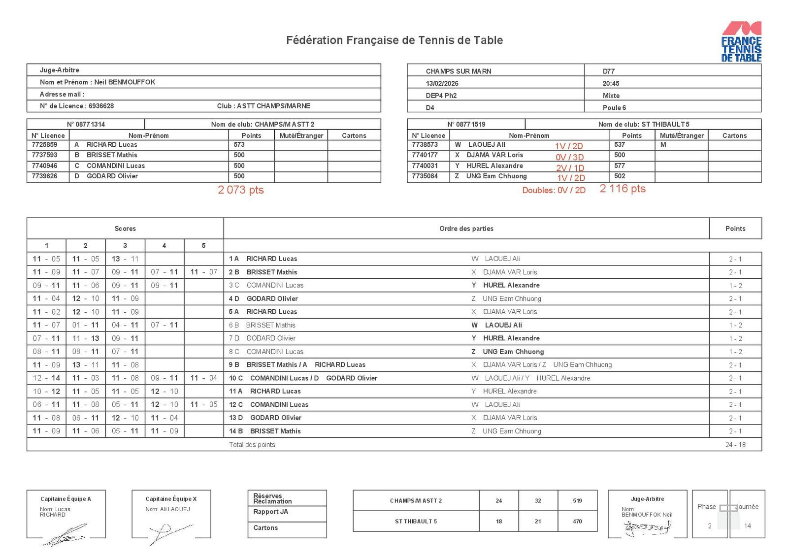 Résultats et détails de la J6 ph1 du championnat par équipe
